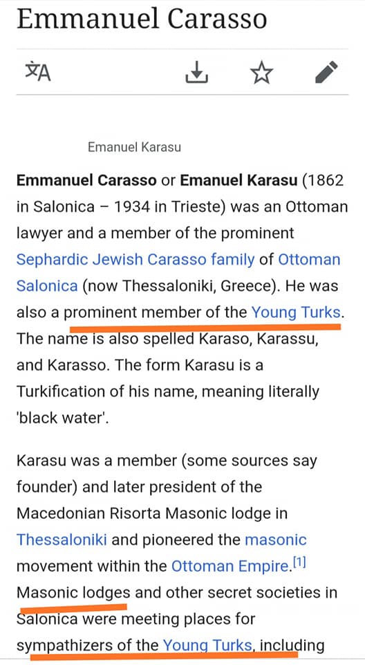 Ξέχασαν να αναφέρουν στην έρευνα ότι το κίνημα των Νεοτούρκων ίδρυσαν πλούσιοι Εβραίοι Μασόνοι της Θεσσαλονίκης κι όχι Τούρκοι.
